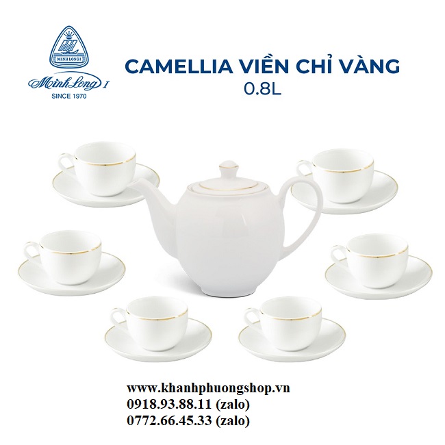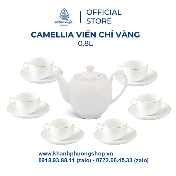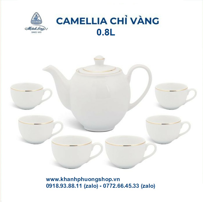 Bộ Trà 0,8L chỉ Vàng gốm sứ Minh Long: