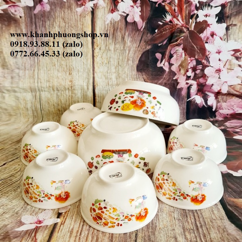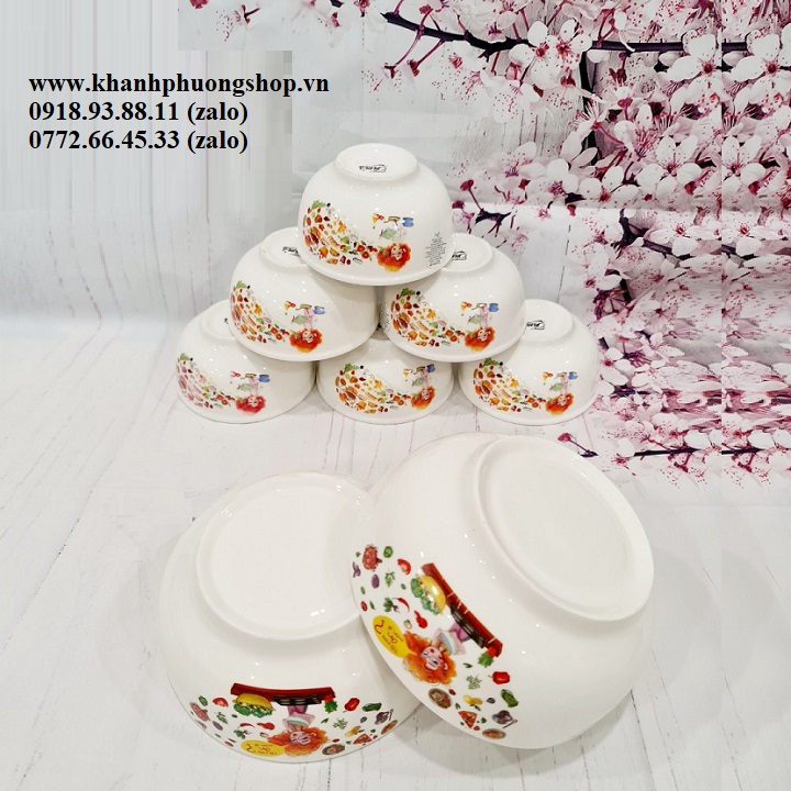 - Qui cách: 02 tô sứ + 06 chén sứ cùng mẫu