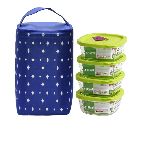 Bộ 4 hộp thủy tinh Lock&Lock 410ml (hình vuông) và túi giữ nhiệt