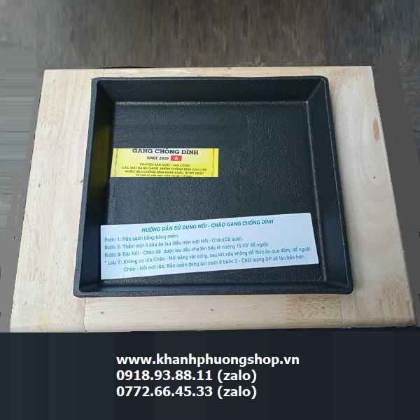 Chảo Gang Bò Né Đế Gỗ Hình Vuông