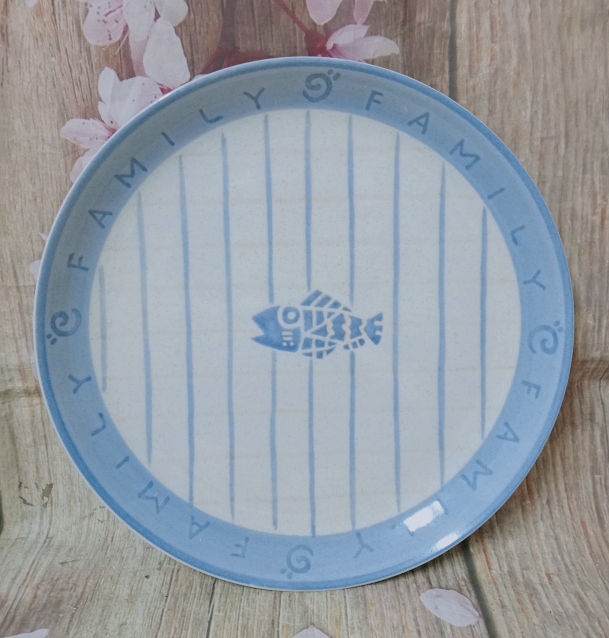 Dĩa sứ Nhật hình cá 26cm màu xanh biển