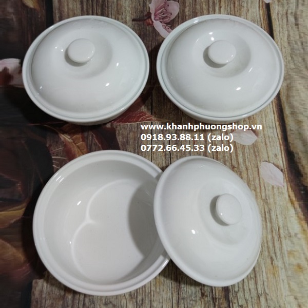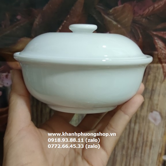 Thố súp trắng 12cm + nắp sứ Minh Long
