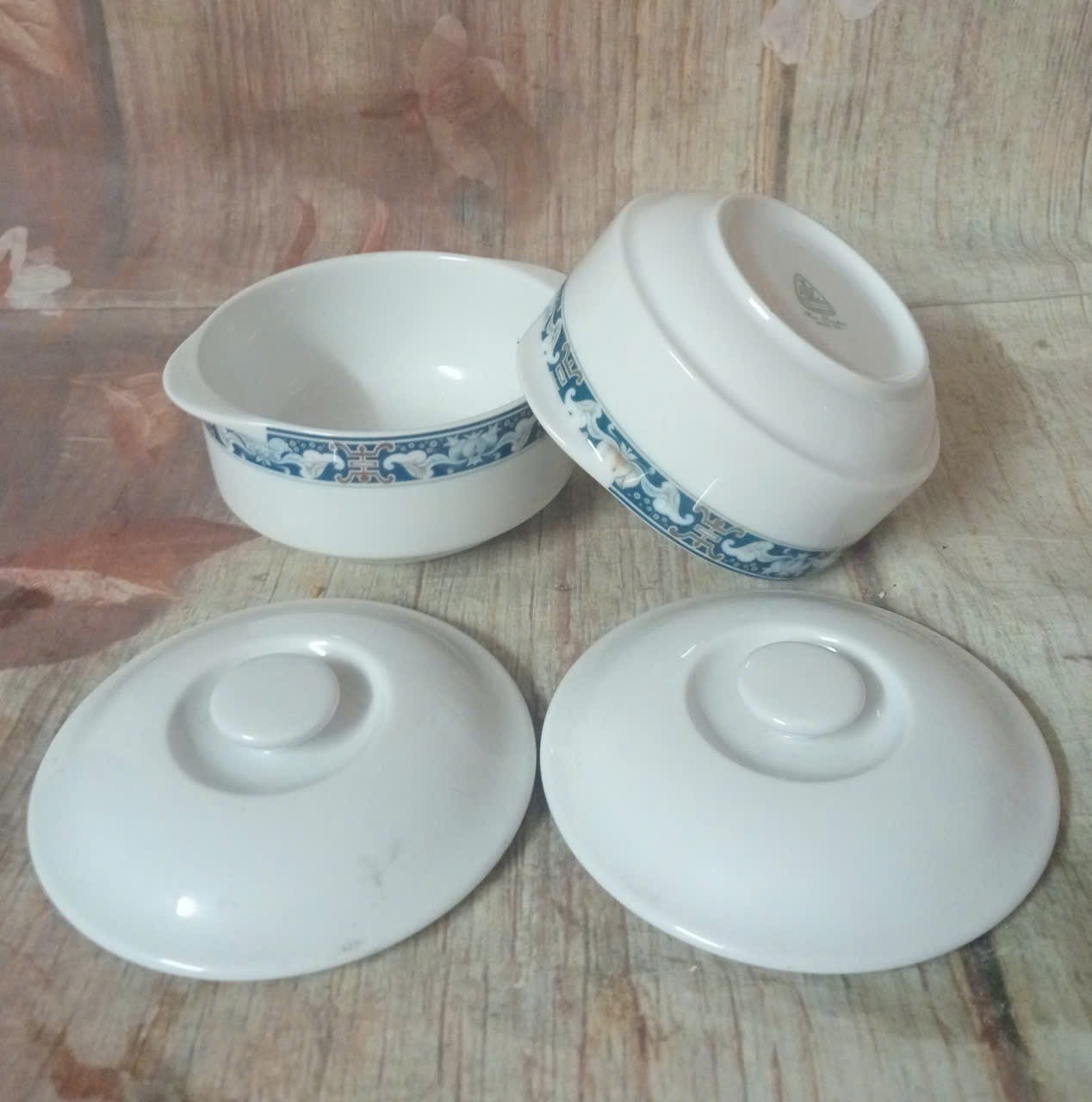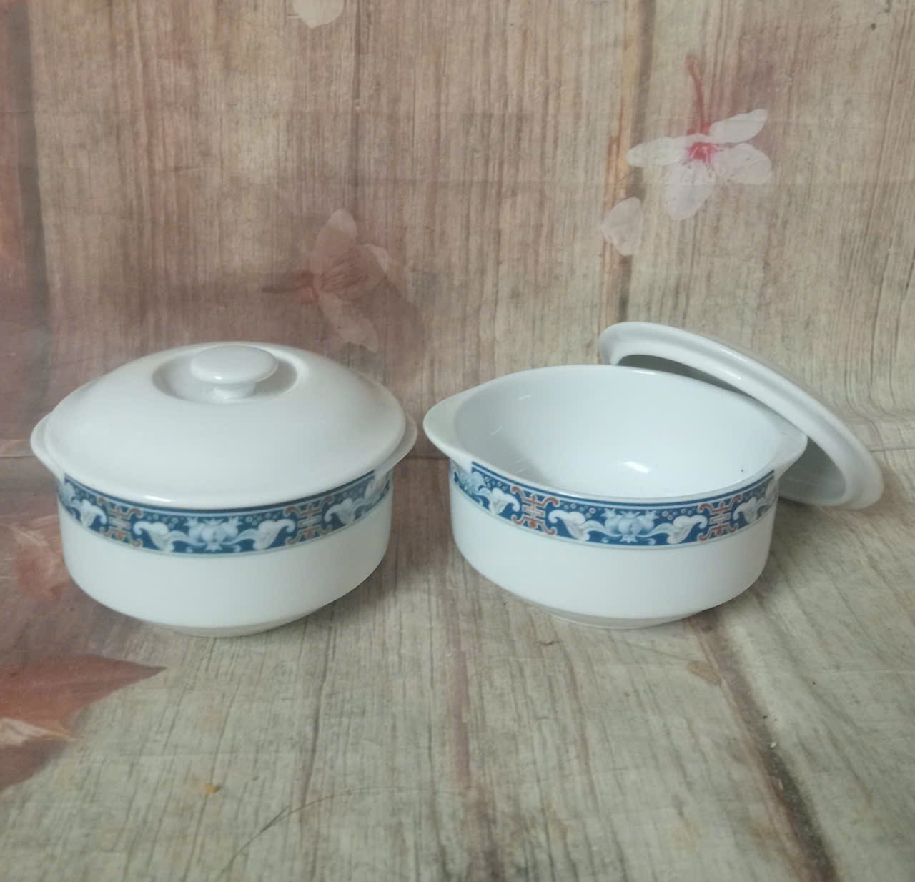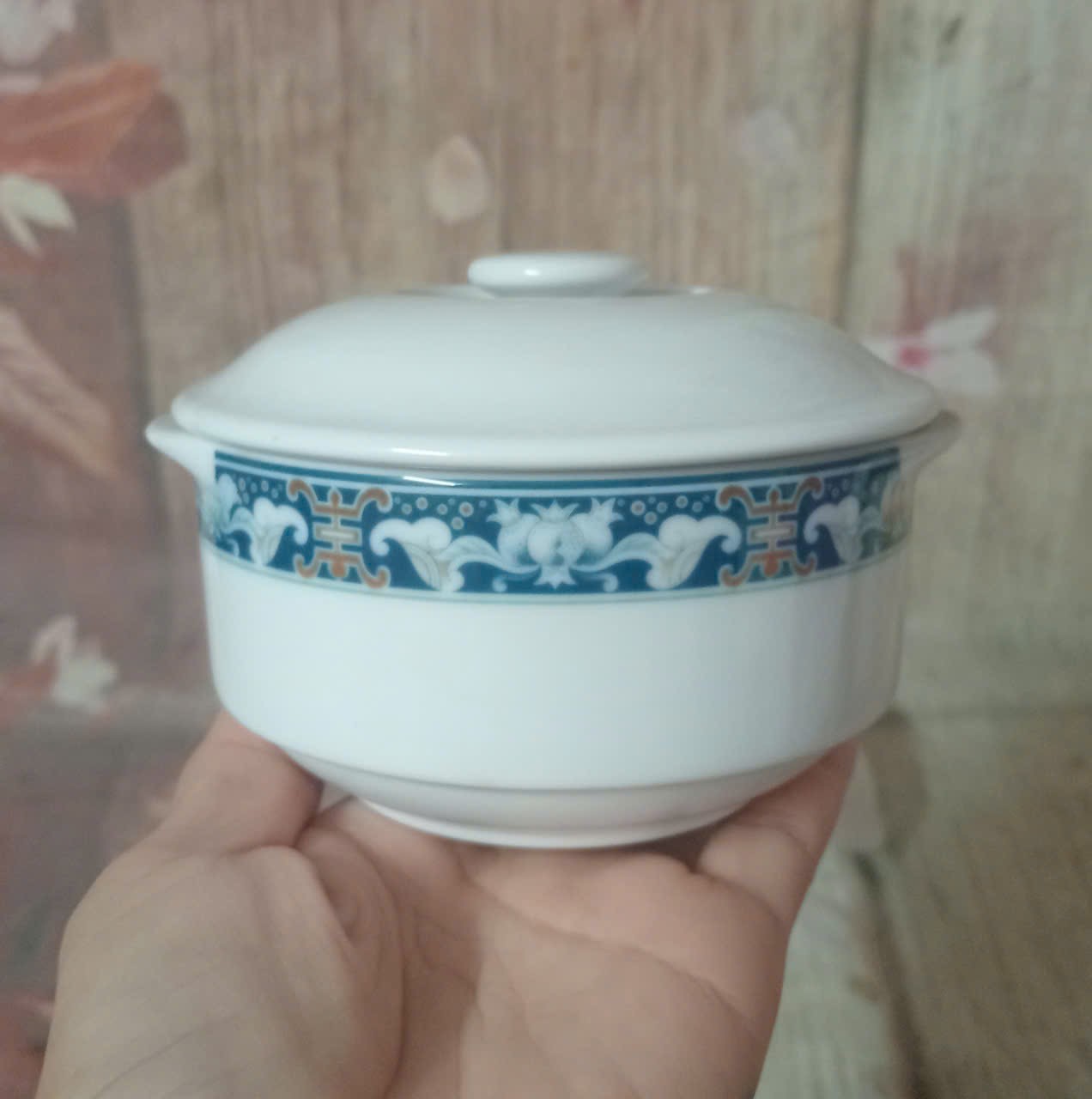 Thố yến viền hoa văn Phước Lộc Thọ ghép nắp trắng