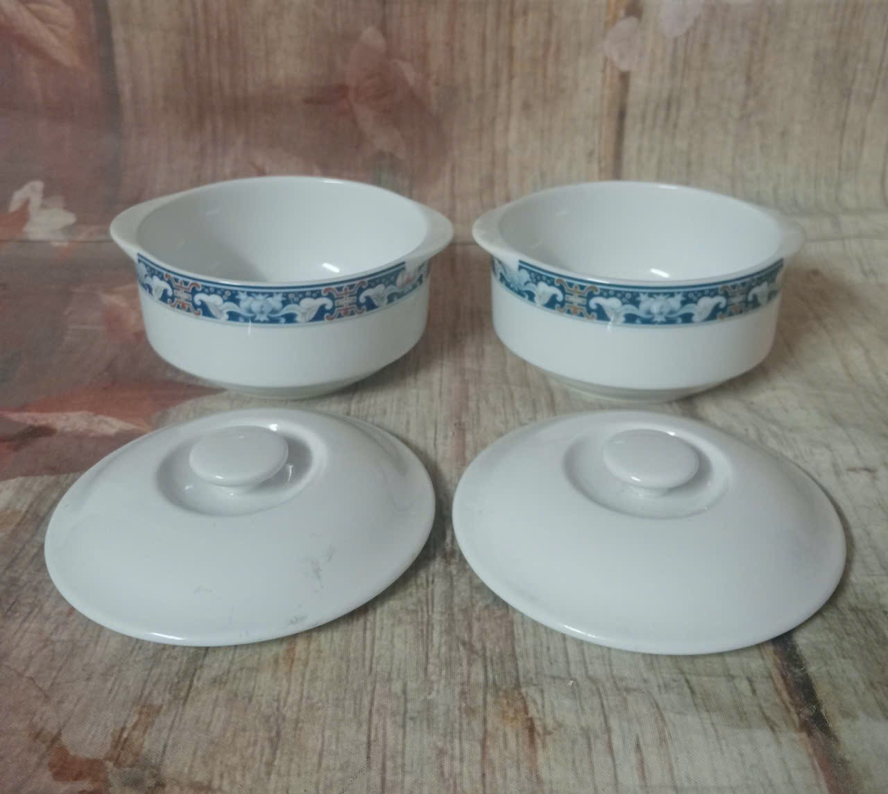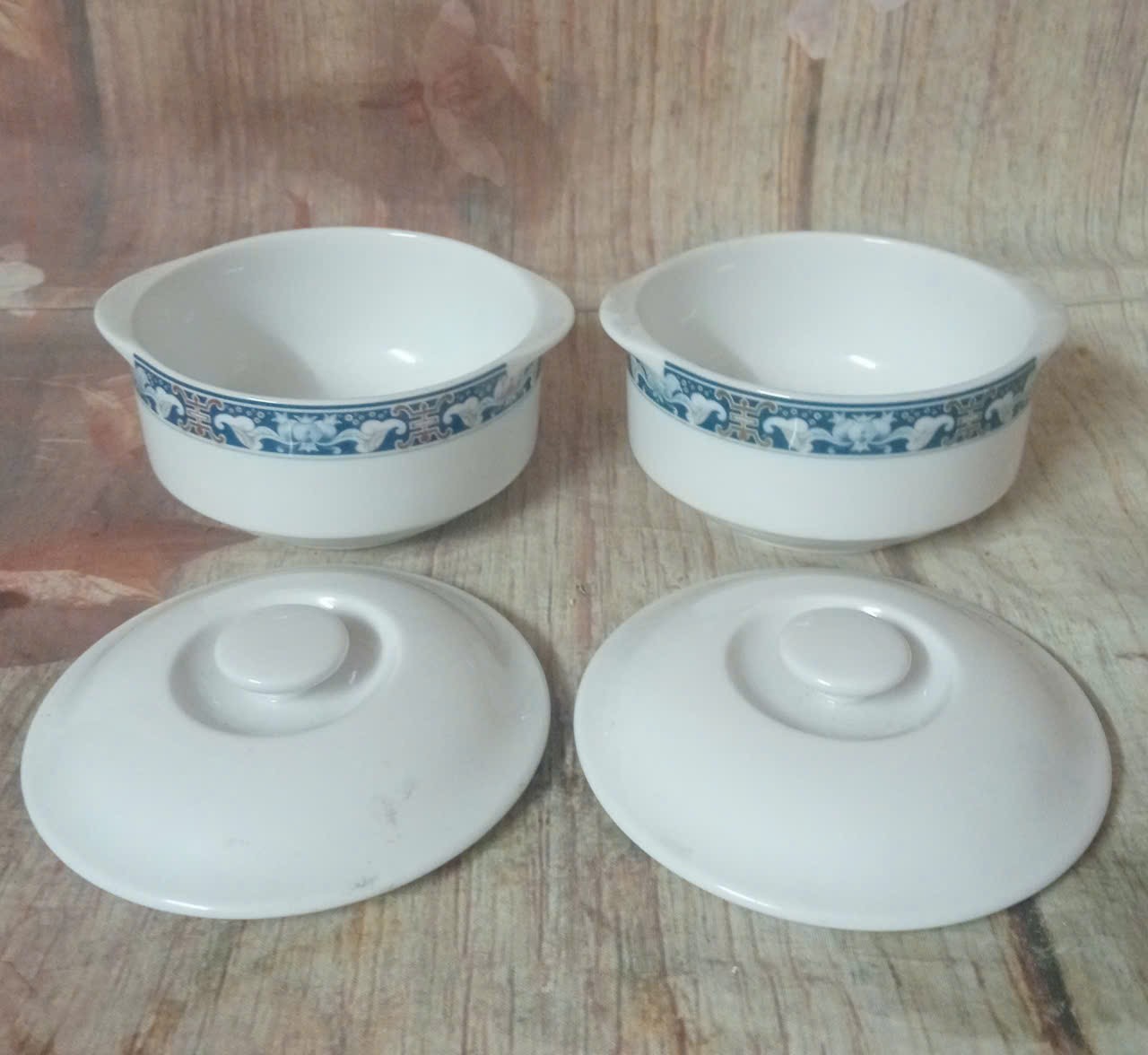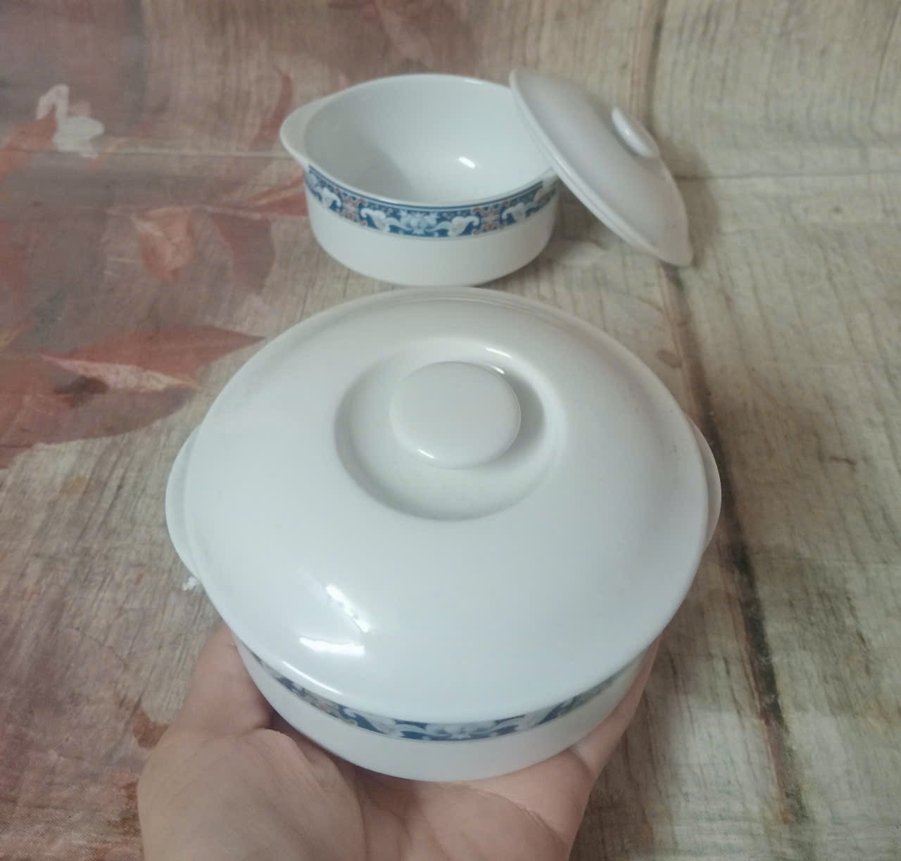 Thố yến viền hoa văn Phước Lộc Thọ ghép nắp trắng