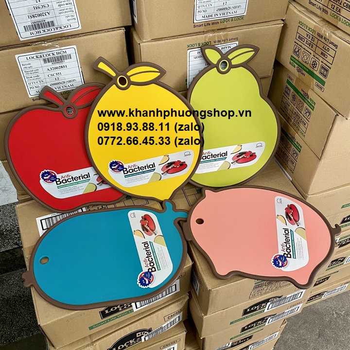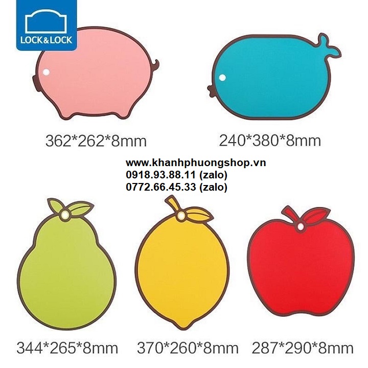- Thớt nhựa Lock&lock chống trượt được thiết kế nhỏ gọn với nhiều hình thù ngộ nghĩnh dễ thương cùng kết hợp với màu sắc tươi sáng góp phần tô điểm cho không gian bếp nhà bạn thêm sinh động.