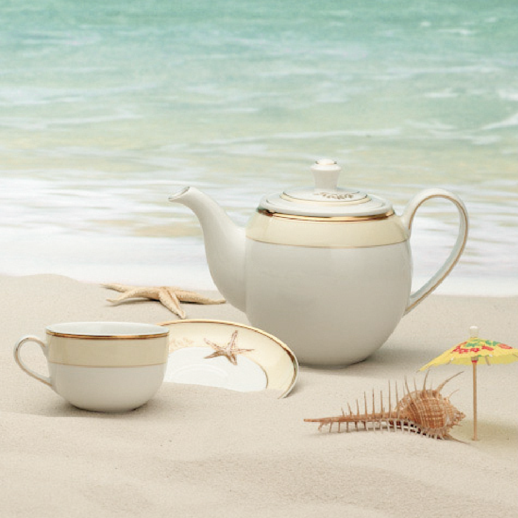 Những hình ảnh thân quen nghêu, sò, ốc, hến... được thể hiện thông qua nét vẽ giản dị nhưng nổi bật trên nền sứ trắng kem trang nhã, mang lại cho chúng ta một làn gió biển tươi mát trong những buổi trà chiều tươi xanh, nhẹ nhàng.