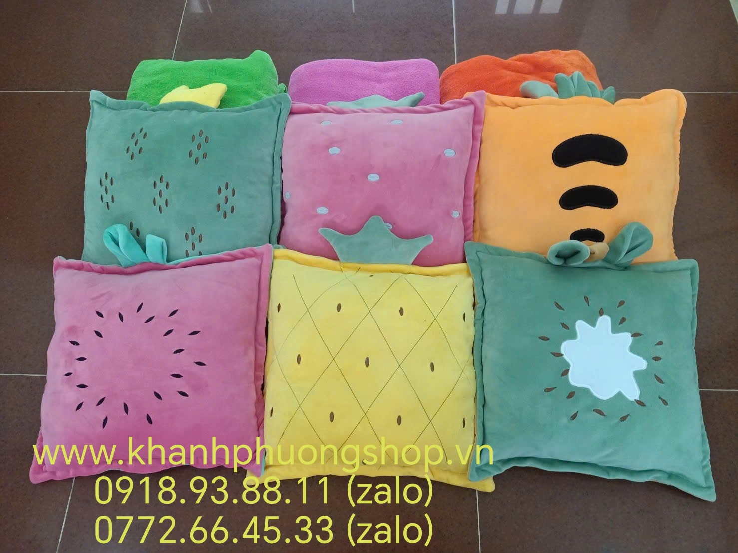 Bộ mền gối 2 trong 1 hình vuông mẫu trái cây